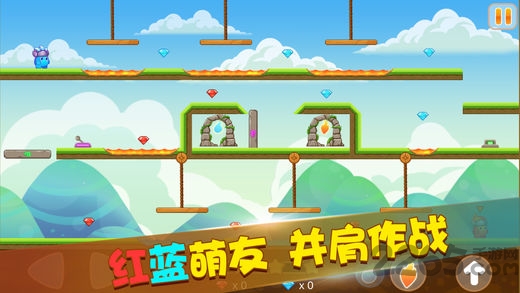 1、玩家需同时操控冰娃与火娃两名角色进行移动。