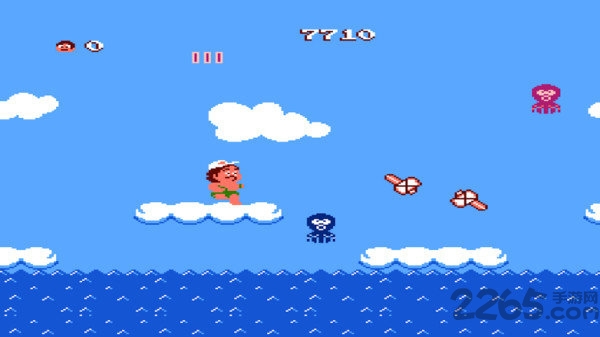 3、众多关卡无论是岛上还是水里,都是经典的FC画质,展现你操作的时候又到了,能不能成功就看你的指尖技术