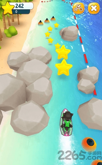 汤姆猫的摩托艇(Talking Tom Jetski)是竖版的休闲益智游戏,游戏采用了卡通的画风,并且使用了经典的角色汤姆猫,汤姆猫这次来到海边进行度假,它将在海边展开一场刺激的摩托艇竞速赛。