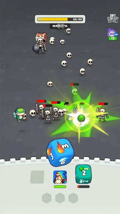 战略塔防:组建你的闲置英雄团队,每个英雄都由一个独特的骰子代表。从挥舞强大法术的法师、具有致命精度的弓箭手、召唤不死生物的死灵法师等中进行选择。制定攻击策略,利用每个英雄的特殊能力,防御一波波可怕的敌人。