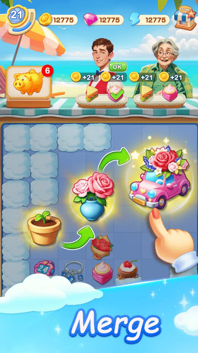 为您的顾客提供化妆品、珠宝、布料和一系列其他时尚物品。你合并的越多,你会发现越多的时尚物品添加到你的收藏中!