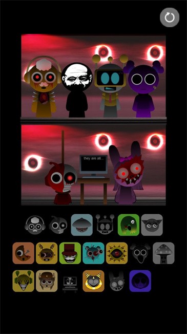 节奏盒子sprunki混音最新版通过组合不同人物来让角色不断形成新的音乐,将右下角的黑色帽子拖放到人物中还能唤起恐怖模式,各种极具趣味的全新角色等你来体验,玩家可随时参与其中来畅玩一番。