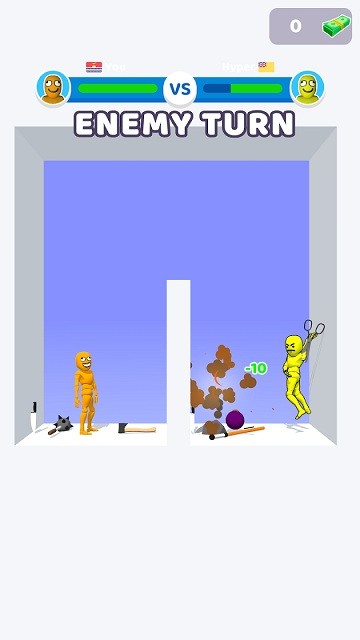 + 使用不同的物品踢击对面的伙伴,并让他先挂彩。