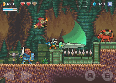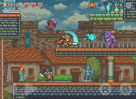 哥布林之剑采用了画风像素很会怀旧的场景,游戏可以让你能够在游戏中不断提高自己的属性,同时也能够有着强大的武器装备难度挑战,让你能够进行轻松愉悦的游戏背景特效,快来 开始你的战斗吧。横版冒险类型闯关游戏,在这个经典复古的游戏当中,玩家需要去帮助游戏中的角色来开启一场战斗,在这里消灭游戏中的怪物,勇敢的开始你的冒险,收集丰富的武器和装备。