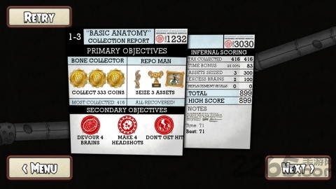 骷髅头无肉身但是却保留了脑子可以说是这款游戏的一个特色。目前我们可以体验的关卡只有24道,不过每一关都有诸多任务成就和物品收集需要你完成,完美通过根本不是一件容易的事,并且随着更新,也会有更多富有挑战的关卡等待着我们。