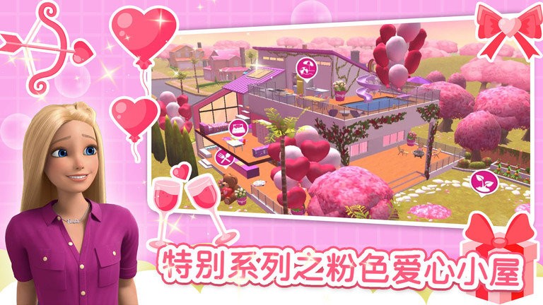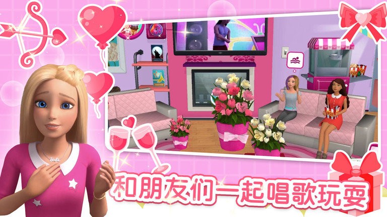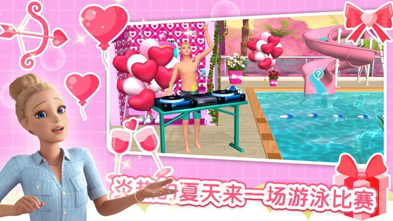 2、以芭比梦幻屋为背景展开的各式有趣泳池派对活动的3D芭比题材冒险游戏;