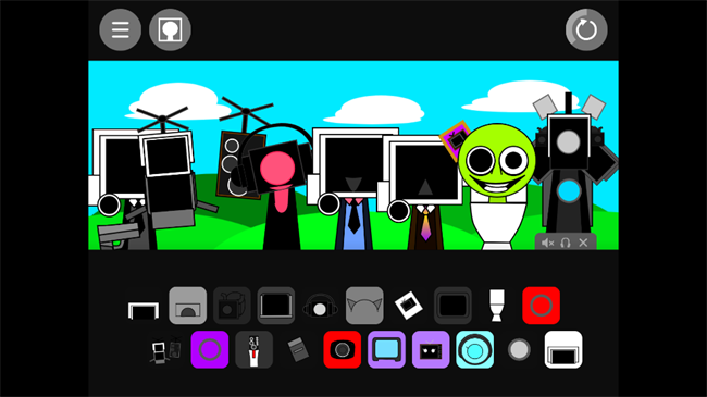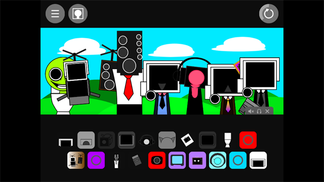 节奏盒子sprunki马桶人游戏提供了多种动感音乐节奏,玩家在这里将可以体验到马桶人这一特异元素,让喜欢马桶人题材以及节奏盒子的朋友提供了一个相结合的畅玩方式,通过自由组合来得到新的作曲。