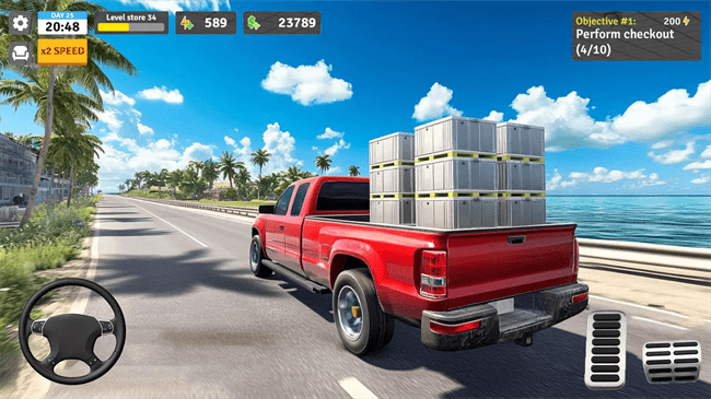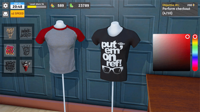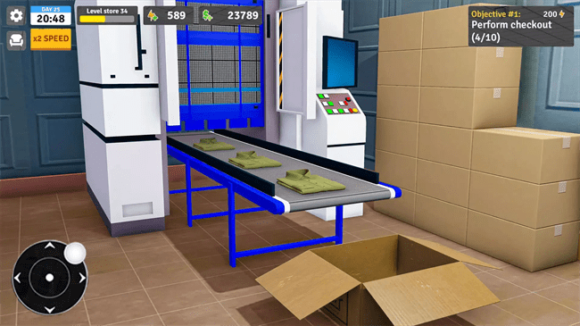 2、在这个直销店商业模拟器中让您的工厂直销店备有各种产品。有效地组织物品,以确保客户在这个工厂直销商业模拟游戏中快速找到他们需要的东西。
