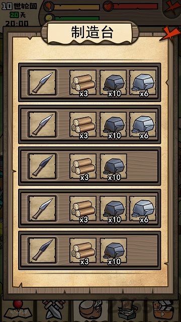 1、探索荒岛收集物资维持生存状态避免死亡。