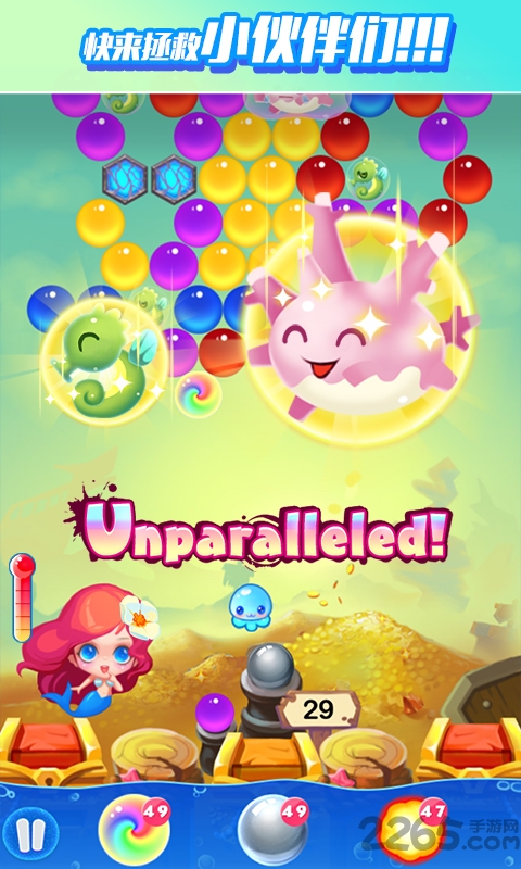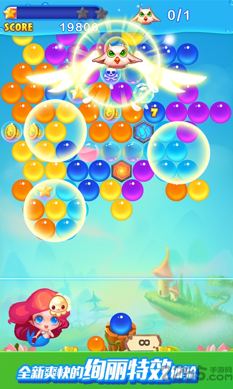 现已开启全新玩法和7大场景,在神秘的亚特兰蒂斯海底世界,跟美人鱼MM一起夺取神秘光玉,解救萌宠,对决Boss,众多精心奇妙的关卡等着您的挑战!