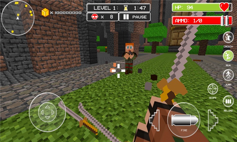 《像素大战进击的巨人》又名《方块王国侵略战》是我的世界画面风格和进击的巨人元素融合的动作游戏,游戏中玩家需要化身方块巨人,来对抗方块王国的敌人,打倒敌人还可以获得它的武器疯狂射击!赶快化身方块巨人,来入侵方块王国吧!