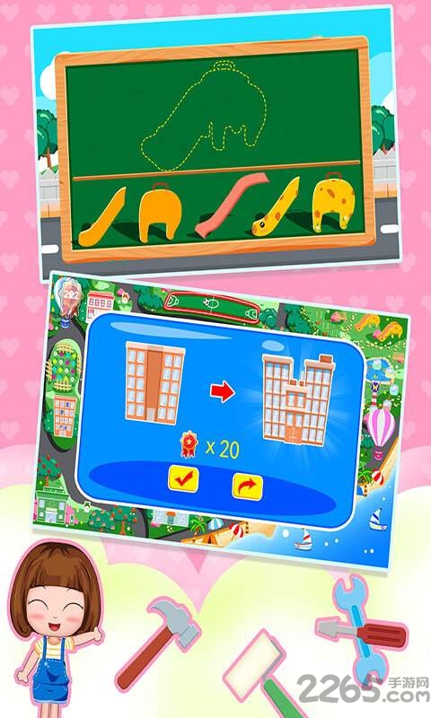 9.搭建游乐园,感受建筑工程的魅力;用赚来的徽章来建房子.