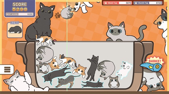 3、操作简单,通过点击屏幕上的小猫咪掉落进行合并,新手也能快速掌握游戏规则。