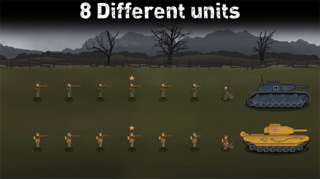 体验世界大战战略的快感,成为指挥将军!指挥德国或英国军队,带领您的部队穿越激烈而坚韧的战场。战略性地管理多达10种不同的单位和各种强大的武器,包括步枪、迫击炮、飞机和坦克。你做出的每一个战术决定都将影响战斗的结果。您能在战壕的严酷现实中智胜对手并取得胜利吗?