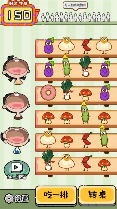 1、点击三个相同食物,喂饱一个吃货;