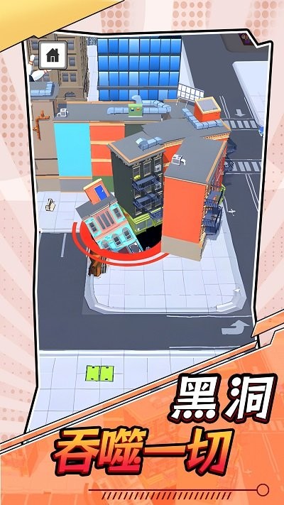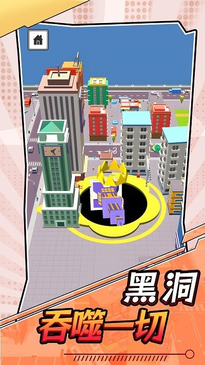 2、创新黑洞操控玩法:玩家扮演黑洞,通过移动吞噬场景中的物体不断扩大自身