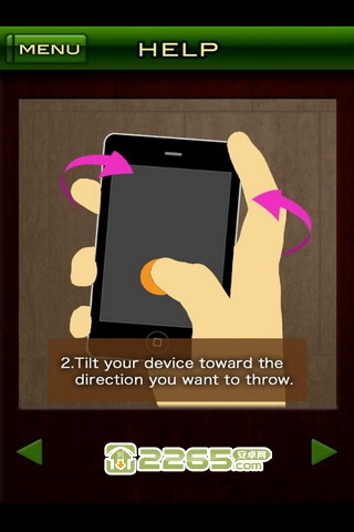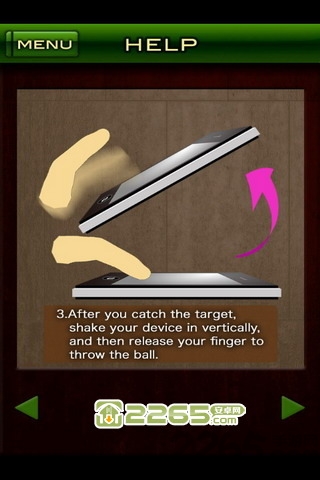 进入游戏以后,首先要握住手机,并且用手指按住屏幕,你就会看到一个乒乓球出现了,然后倾斜你的手机来调整你的丢球的方向。下面是关键的了,接着,你需要上下摇晃你的手机,这个是调整你的丢球的角度的,你摇晃的次数越多,你的球就丢得越远;同时,你还可以移动手指来调整球的高度。一开始肯定会很难的,因为你心中没数,但是熟练以后还是相当有趣的。