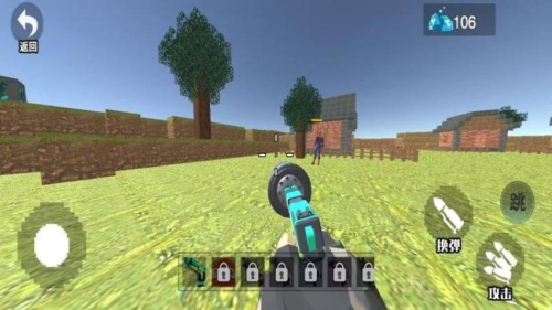 4、注意界面左上角的“返回”键和右上角的钻石数量。不同的武器需要解锁,瞄准前方目标进行射击就能体验游戏乐趣了。