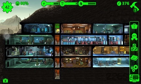 游戏包含资源收集、规划建造、人员配置、危机处理等元素。玩家扮演的角色是避难所(Vault)的监督者(Overseer),规划建造一座避难所,增加避难所居民数量,并保证居民的心情指数。