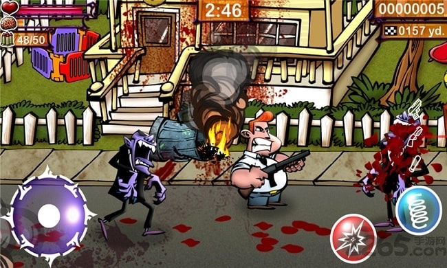 《虐杀僵尸 Fangz》是一款非常重口味的横向卷轴动作游戏。最后的亡灵杀手来了!彻底的僵尸杀戮,血肉横飞的街道战场!在游戏中,玩家通过虚拟摇杆对主角进行控制,使用剑、电锯、喷射火枪等各种武器击打从四面八方出现的怪兽。