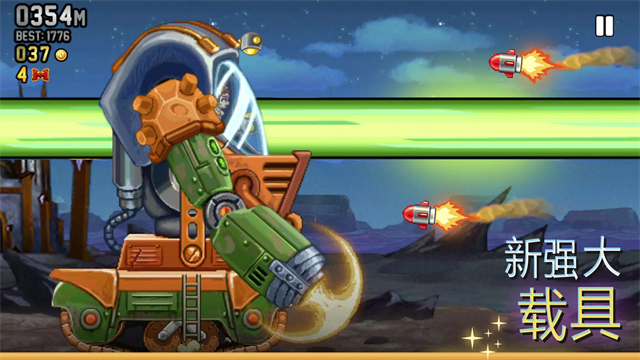 3.驾驶传说中的机关枪喷射飞行器出发,消灭邪恶的科学家,但在每场游戏中,你要收集钱币并完成任务,以赚取现金,在“仓库”购买新装备!