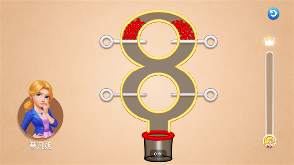 2、进入消除关卡后,将三个同色抱枕排在一起即可消除,通过消除来完成设施修复的进度要求。