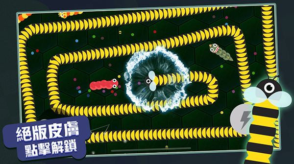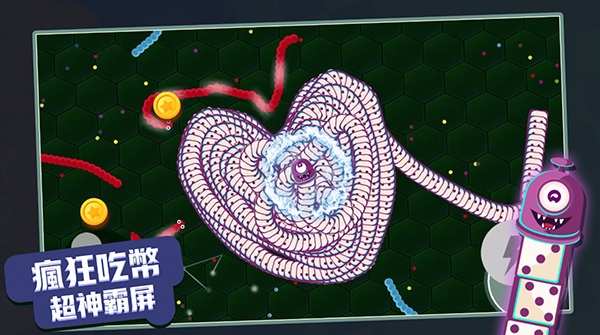 1、通过滑动控制移动方向,吞食能量点不断延长身躯;