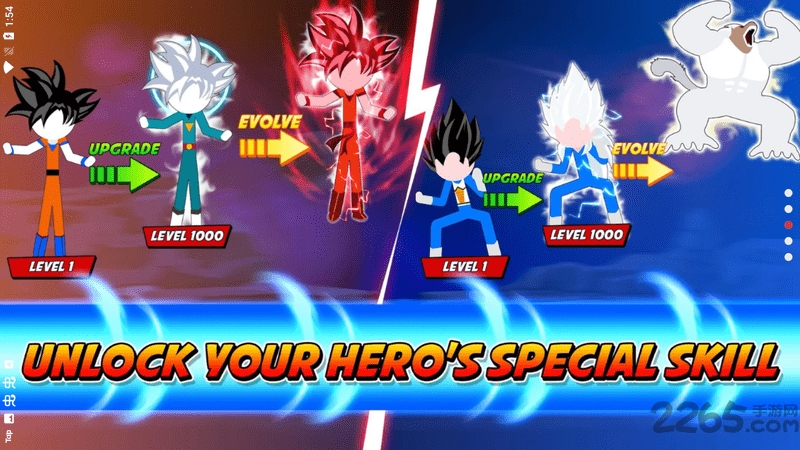 由火柴人倾情出演的龙珠大战,画面精美动作热血,还有熟悉的大招,玩家可以解锁众多的角色冒险,可以使用变身、龟派气功等技能进行攻击,有着闯关模式、PVP对战模式等众多的玩法。