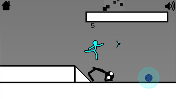 2、使用红框标注的蓝色摇杆,控制火柴人角色移动。