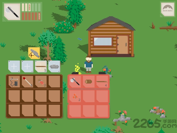 1、通过砍树挖石获取基础资源制作工具。