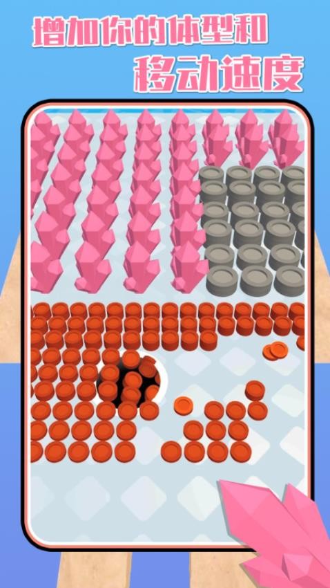 4、采用3D俯视角与鲜艳的色彩对比,吞噬特效直观爽快,场景物体丰富多样,营造出轻松又充满动感的游戏氛围。