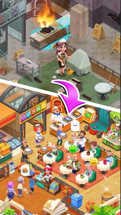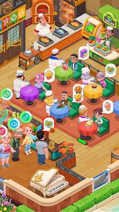 与常见的烹饪游戏不同,该游戏模拟从烹饪到上菜的过程,完全模拟餐厅管理游戏玩法,让您身临其境地参与烹饪的方方面面。