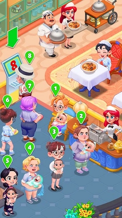游戏中将呈现一系列流程。您还可以升级服务员和厨师,使他们更有效率和更快;升级菜肴,使食物更美味;