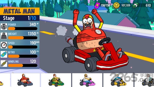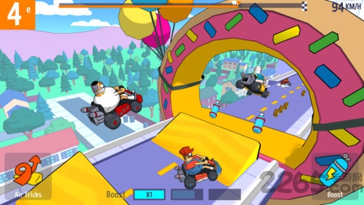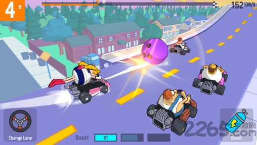 2、收集各种造型怪异的卡丁车!使用各种手段将对手撞翻在赛道上