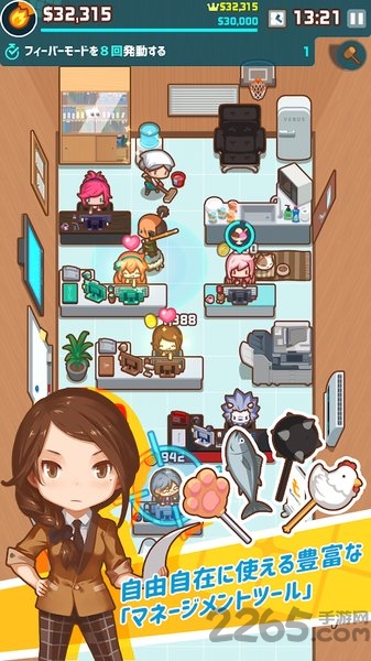 赚到钱后最烦恼当然是有什么可以买了,在游戏中可是不愁这个,无论公司设备,可爱宠物,老板装备以至「管理」道具,过百款物件让您选择!