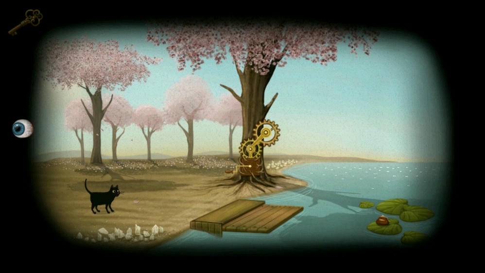 春天,来到雕像那里,推开地上的木头堆出现一个小洞,猫咪进去