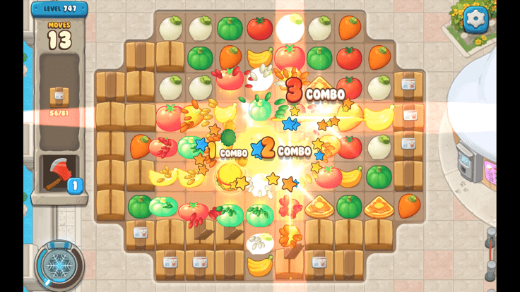 1、展现你超强的消除技巧,完成这个卡通世界里更多的挑战,来拯救游戏世界。