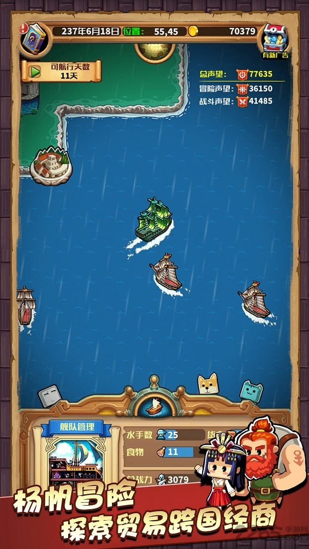 非常好玩有趣的模拟经营类的冒险航海游戏,游戏的品质不错,玩法很丰富,画面简简单单的,很清爽,任务难度也不太高,还要负责为自己的船员安排工作,探索未知的世界寻找宝藏。和危险的海盗搏斗维护海面上的和平!