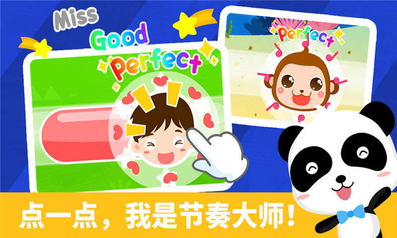 2.让宝宝成为节奏大师! 花样繁多的点击组合,全方位锻炼宝宝节奏感;伴随宝宝每次正确点击,场景也有奇妙变化。