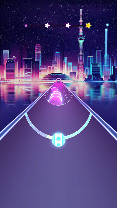 1、通过滑动屏幕控制小球跟随音乐节奏穿越障碍物。