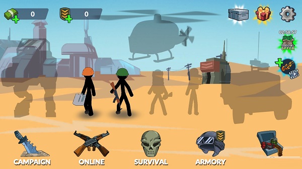 3、玩家需要是使用多种方式来将你的火柴人军队,2265训练实现队伍实力的增强;