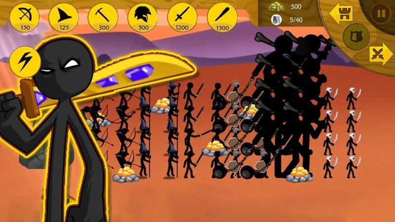 收集各种资源来强化自己的部队和英雄,带领自己的火柴人士兵,