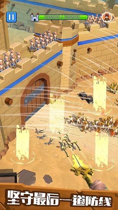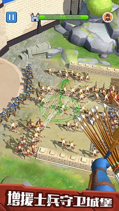 1、操控弓箭手守卫城堡大门抵御敌军进攻保护城堡安全。