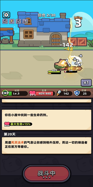 采用了前后逆袭的脚本设计,前期不敌对吼,后期通过对战获得强力武器后,角色能力值大幅度提升,一个普通攻击的就可以将满屏的敌人清理干净,突出了割草的爽感,而满屏的大数字的视觉效果体现了角色的强力。
