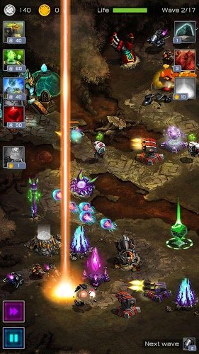 1、在四十个独特关卡中自由建造防御塔抵御外星军队进攻。