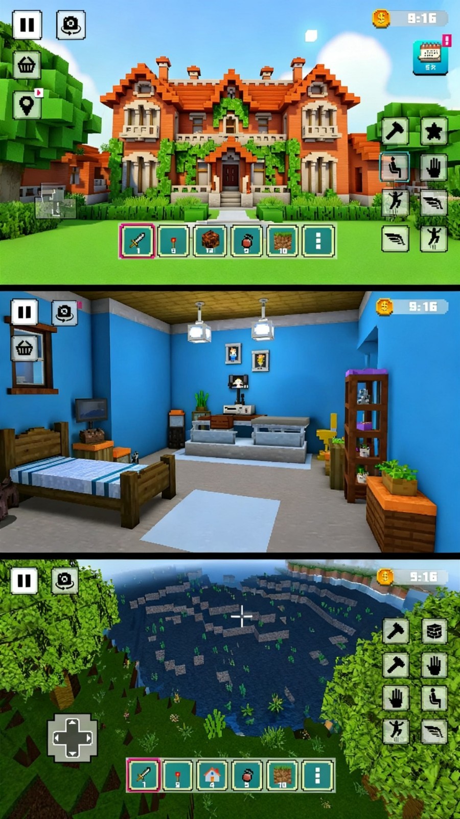 2、画面采用明亮清新的方块风格,色彩饱满且光影自然,配合舒缓的背景音乐,营造放松而富有成就感的创造氛围。