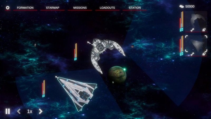 航行于充满机遇与危险的混乱银河,完成任务或参与战斗可获得积分,用于升级和扩展你的舰队
