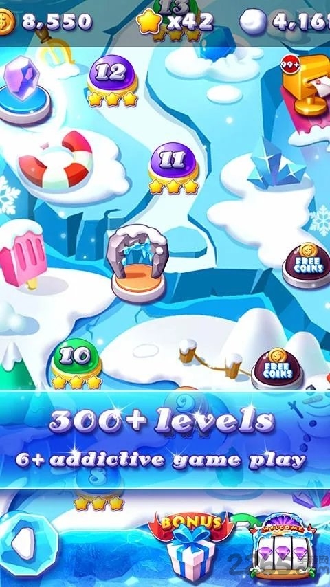 ice crush游戏是一款主打冰雪主题消除玩法的手机游戏。全新的ice关卡内容,在冰雪世界里享受消除的乐趣,超多乐趣设计,消除拯救圣诞老人,完成特殊消除等等任务等你挑战,赶快来下载试试吧!
