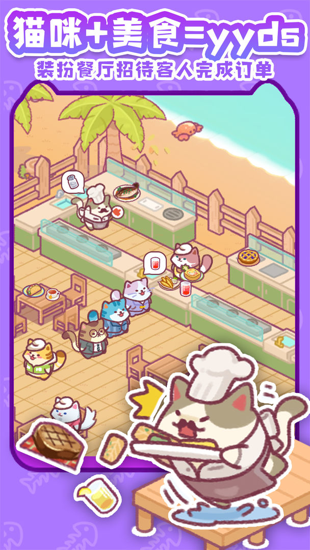 动物森幽会的萌趣世界里,圆润柔软的猫咪们经营着海鲜餐馆,您作为店主需要研发各式海鲜配方来吸引更多猫客,通过收益扩建店铺并添置厨具,游戏采用轻松挂机模式,雇佣的猫咪员工会自动完成点单服务,让您享受悠闲的经营时光。