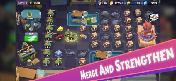 玩具碰撞厨房浩劫idle toy crash是一个放置类的玩具合成策略玩法,合并它们变得更强大!用不同的模块组装你的机器人,一个微型世界等你来发现!打败敌人获得金币和抢奶酪。参加限时活动并获得惊人的奖励。